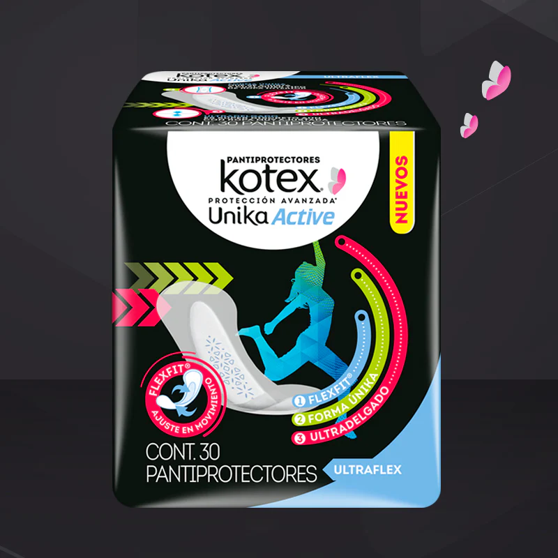 Los Pantiprotectores Kotex® Unika Active te brindan la mayor comodidad y seguridad adaptándose al ritmo de tus movimientos aún en los más extremos.