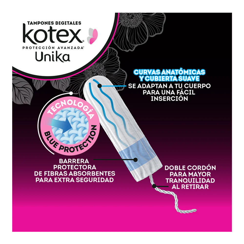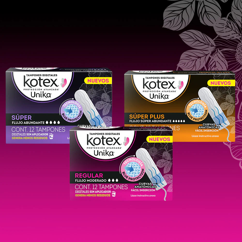 Los nuevos Tampones Digitales Kotex Unika te brindan la máxima protección que te permite seguir con tu día sin preocuparte por nada.