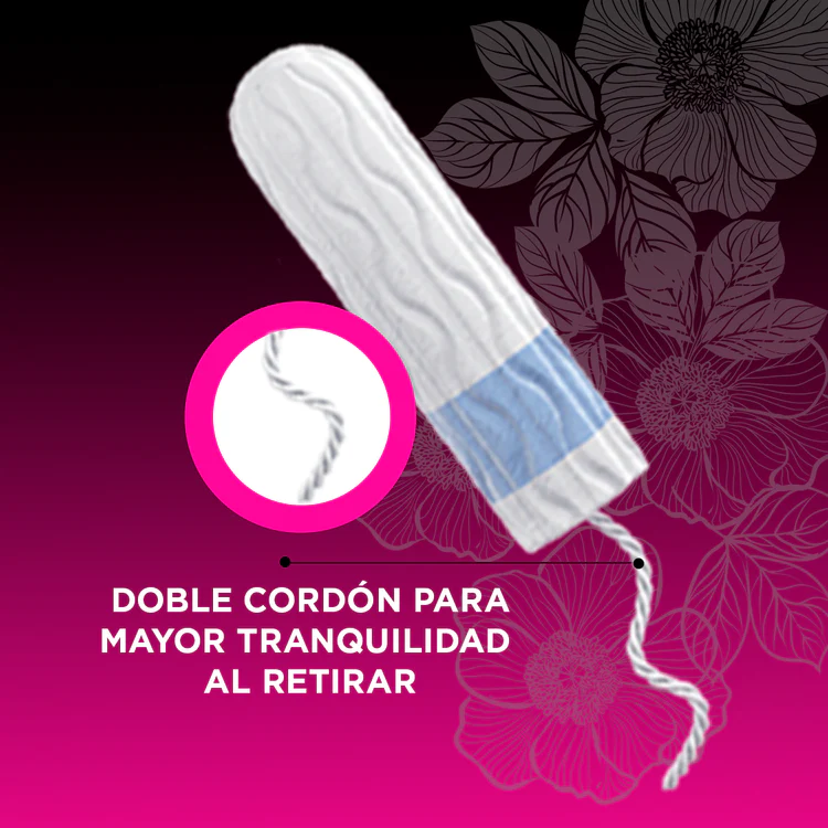 Tampones para flujo regular. Resistentes, sin aplicador para generar menos residuos y con curvas anatómicas de fácil incersión. Cuenta con barra protectora para darte mayor seguridad y evitar accidentes. Con doble cordón para retirarlo de forma sencilla y sin complicaciones.}
