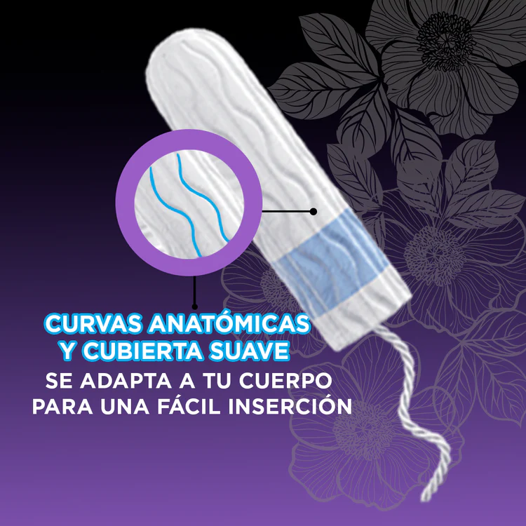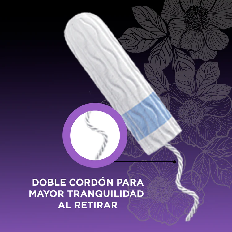 Tampones para flujo regular. Resistentes, sin aplicador para generar menos residuos y con curvas anatómicas de fácil incersión. Cuenta con barra protectora para darte mayor seguridad y evitar accidentes. Con doble cordón para retirarlo de forma sencilla y sin complicaciones.}