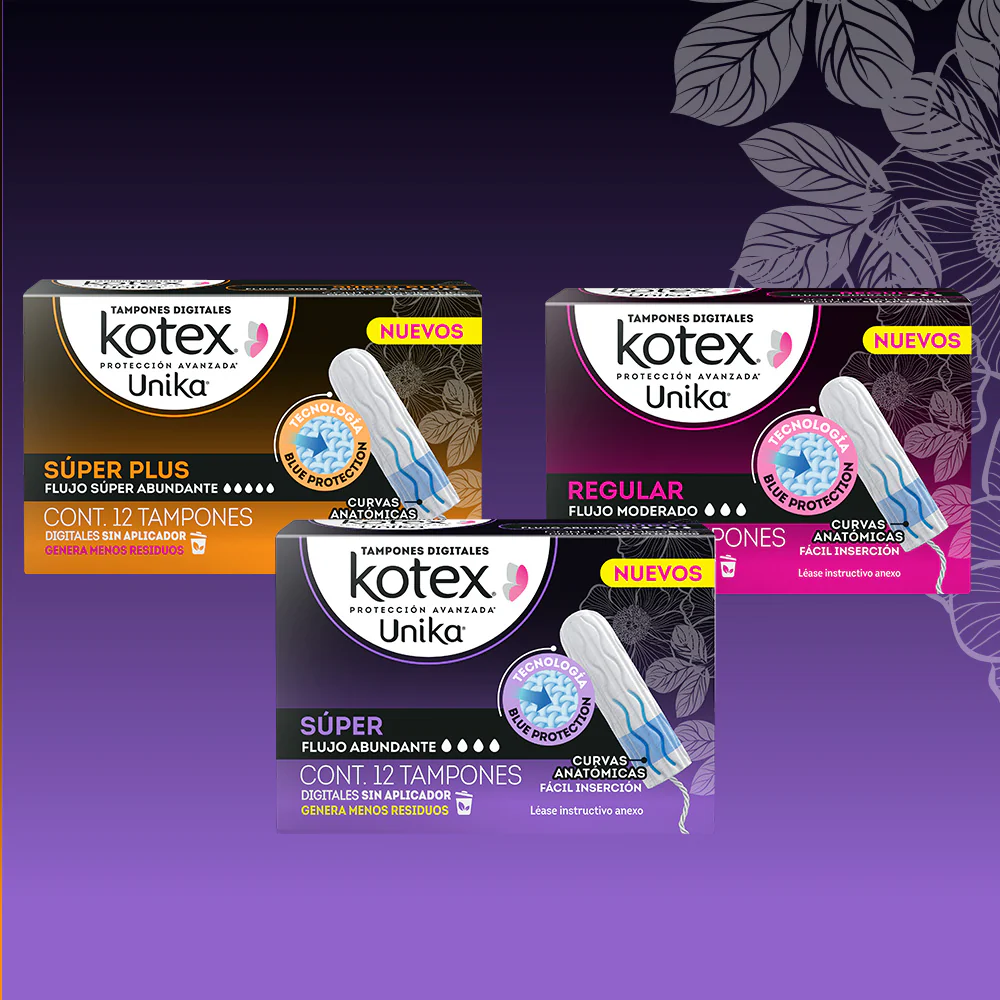 Los nuevos Tampones Digitales Kotex Unika te brindan la máxima protección que te permite seguir con tu día sin preocuparte por nada.