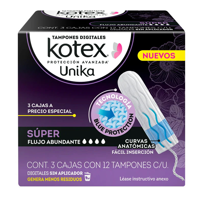 Con los Tampones Digitales súper sin aplicador Kotex ® Unika disfruta la máxima protección y comodidad generando un menor impacto al medio ambiente. HIGIENE ES SALUD.