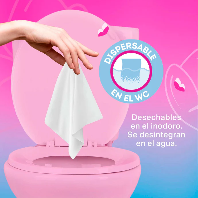 Toallitas húmedas de higiene íntima, que se desechan y deshacen fácilmente en el inodoro, ayudando a proteger el medio ambiente.