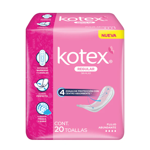 Uso Kotex desde hace muchos años y eran las únicas que me daban esa seguridad por la absorción y sus alas, pero ahora con su nueva presentación no se pega bien a la ropa y está muy plastificado que suena la toalla mucho