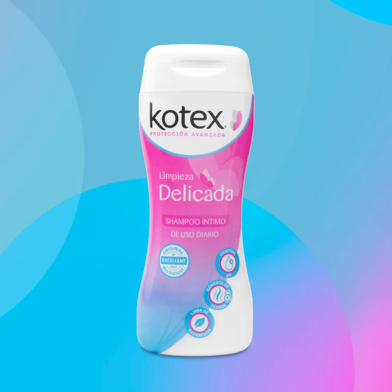 El shampoo íntimo Kotex te mantendrá limpia y libre de olores preservando el PH natural de tu zona íntima. Complementa tu rutina de higiene íntima diaria con las toallitas húmedas Kotex.