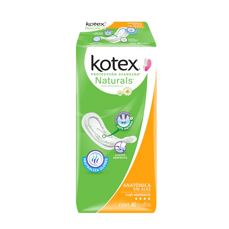Toallas Kotex Naturals Anatómicas Sin Alas